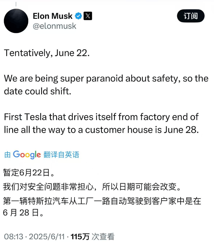 美国当地时间6月11日,特斯拉CEO埃隆·马斯克正式宣布,暂定将于6月22日向公众提供Robotaxi服务。一时间,自动驾驶汽车的商业化运营再次成为全球瞩目的焦点。